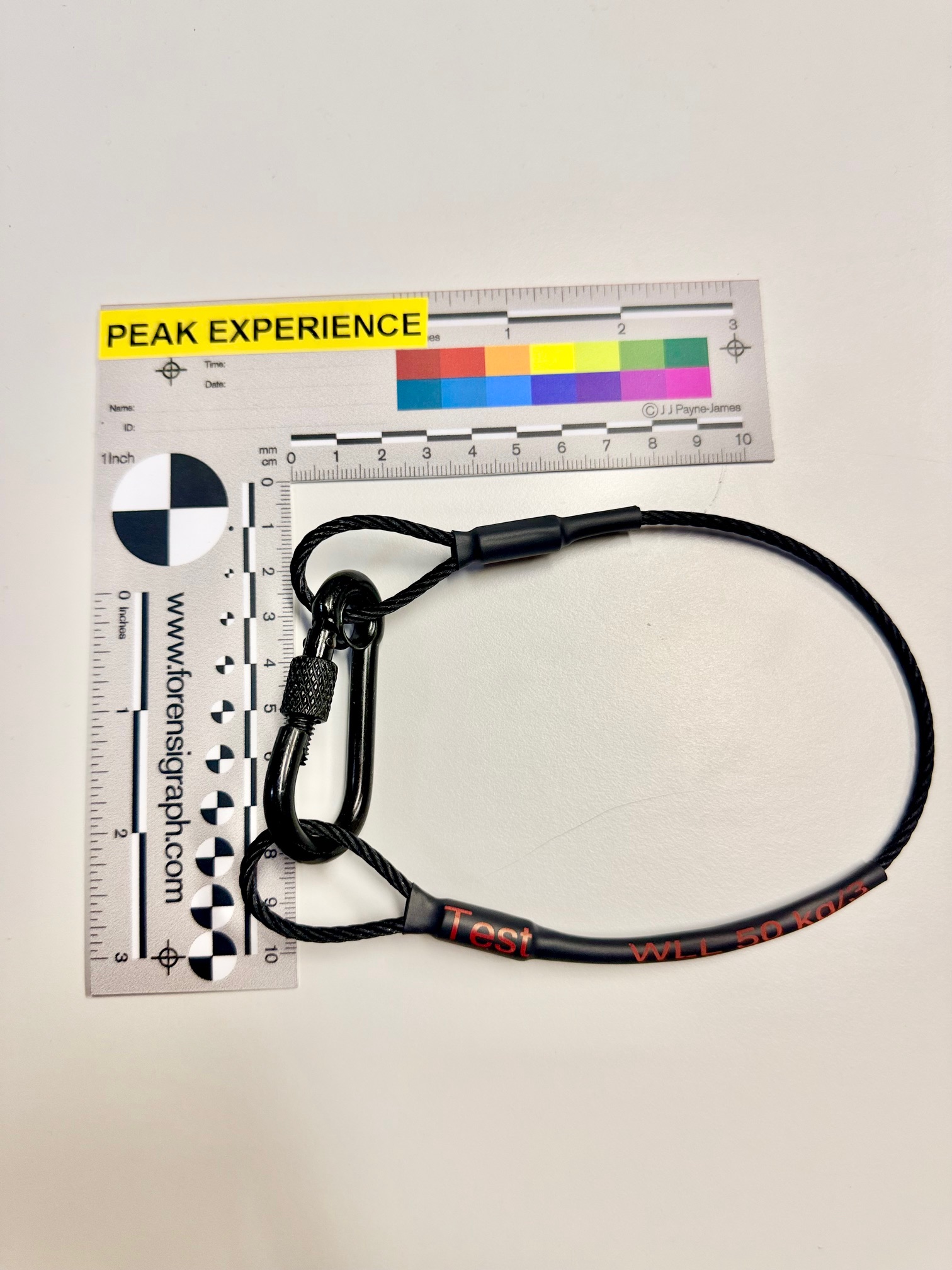 Vajerstropp med integrerad karbinhake för upphägning av t.ex ljud & ljusarmaturer